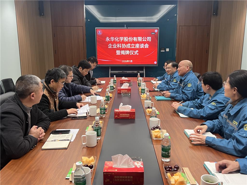 1月14日,永華化學股份有限公司企業(yè)科學技術協(xié)會成立座談會暨揭牌儀式在福山工廠順利舉行,標志著公司在科技創(chuàng)新與人才培養(yǎng)方面邁出堅實一步。常熟市科學技術協(xié)會副主席呂廷鈞、科創(chuàng)部部長余正茂、副部長吳圣華、海虞鎮(zhèn)科技人才辦主任陶智明、永華化學科協(xié)副主席戴惠明等出席儀式并為永華化學企業(yè)科協(xié)揭牌。