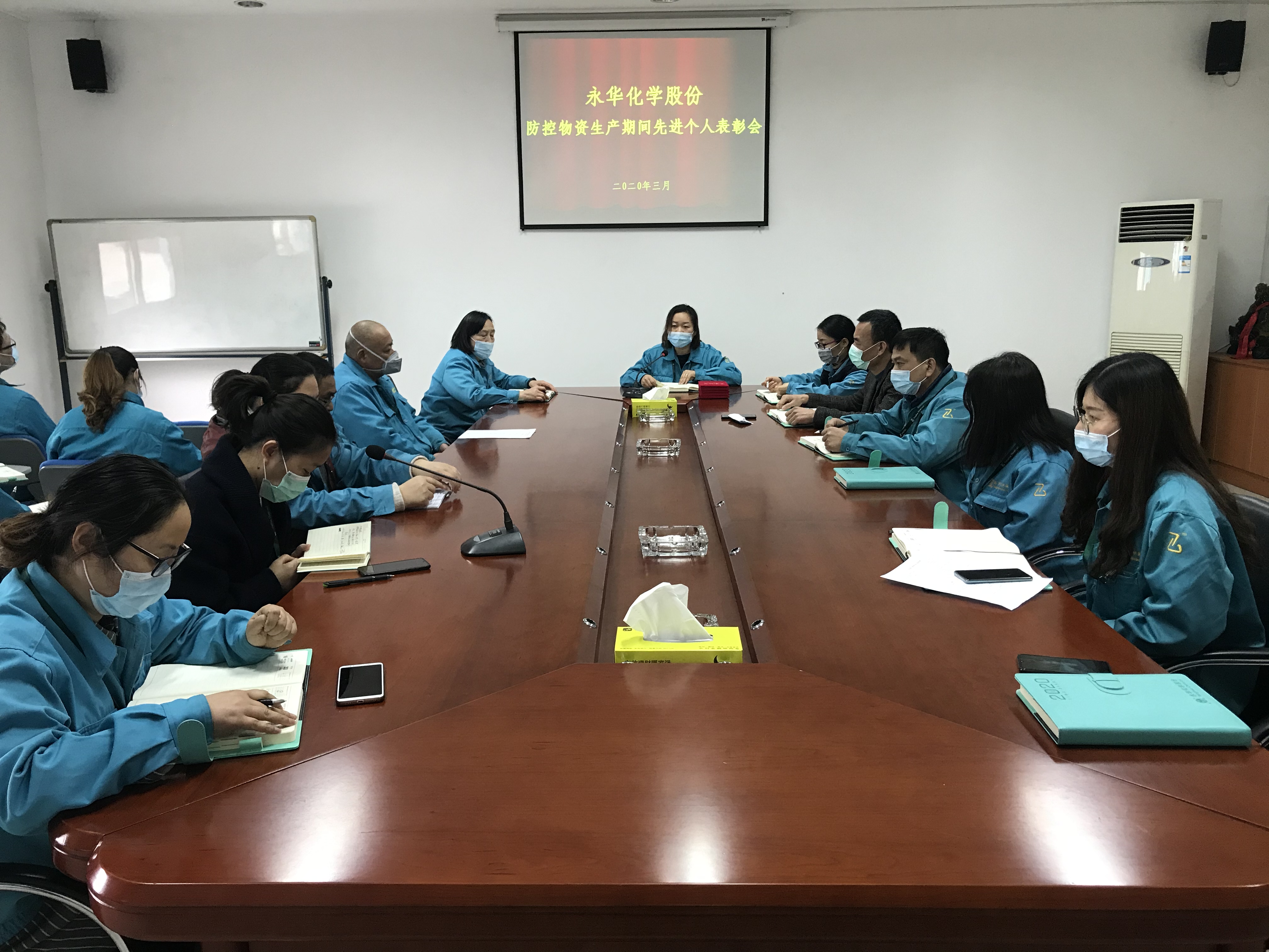 2020年3月13日,我公司召開防控物資生產(chǎn)期間表現(xiàn)突出的“先進(jìn)個人”表彰大會。供應(yīng)鏈副總張麗萍、銷售副總周軍、工廠各部門副職及以上干部出席會議,會議由工會主席劉敏花主持。