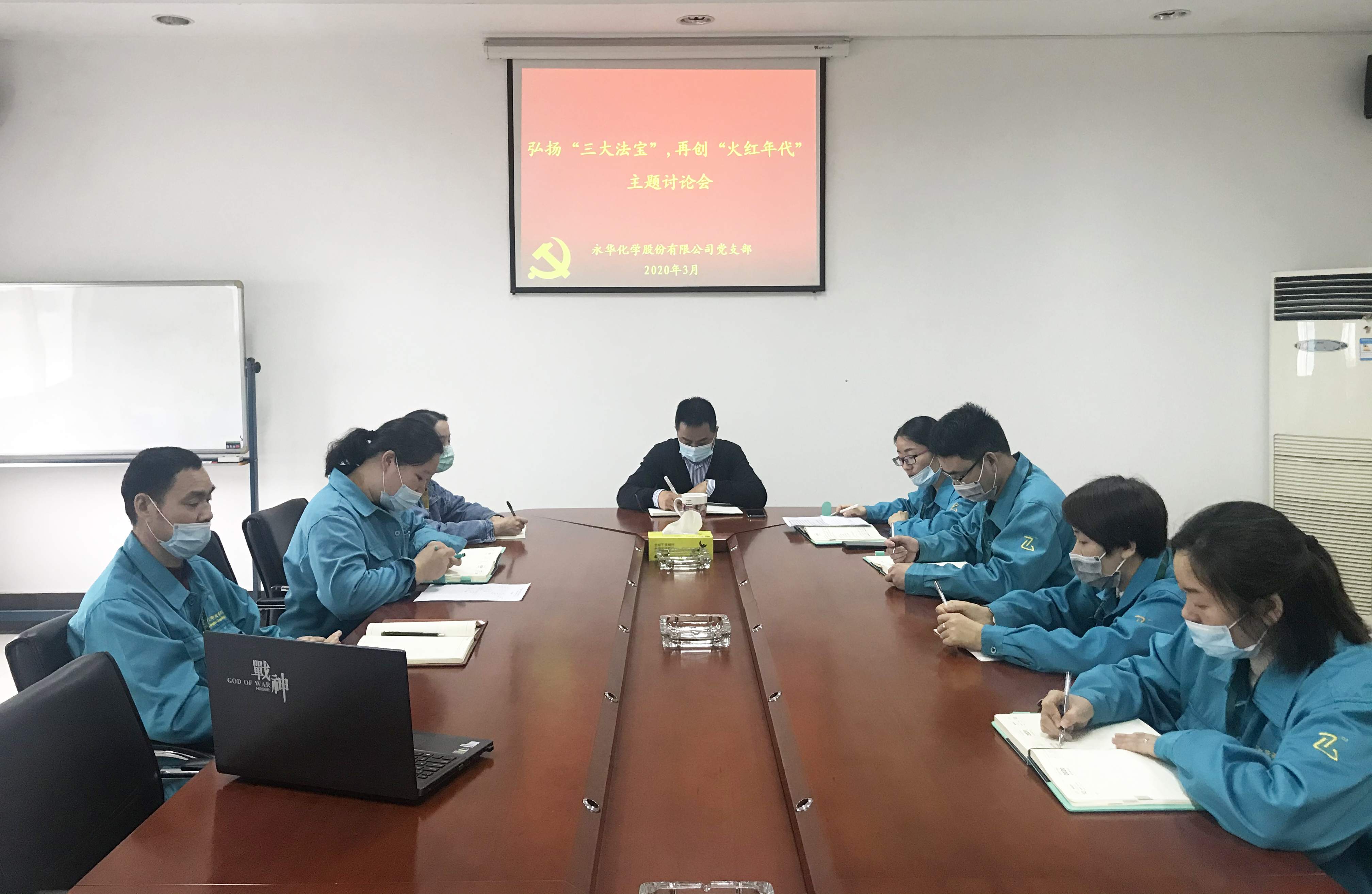 3月26日下午,根據(jù)黨員冬訓(xùn)工作要求,永華化學(xué)黨支部開展“弘揚(yáng)三大法寶,再創(chuàng)火紅年代”主題討論會(huì)。